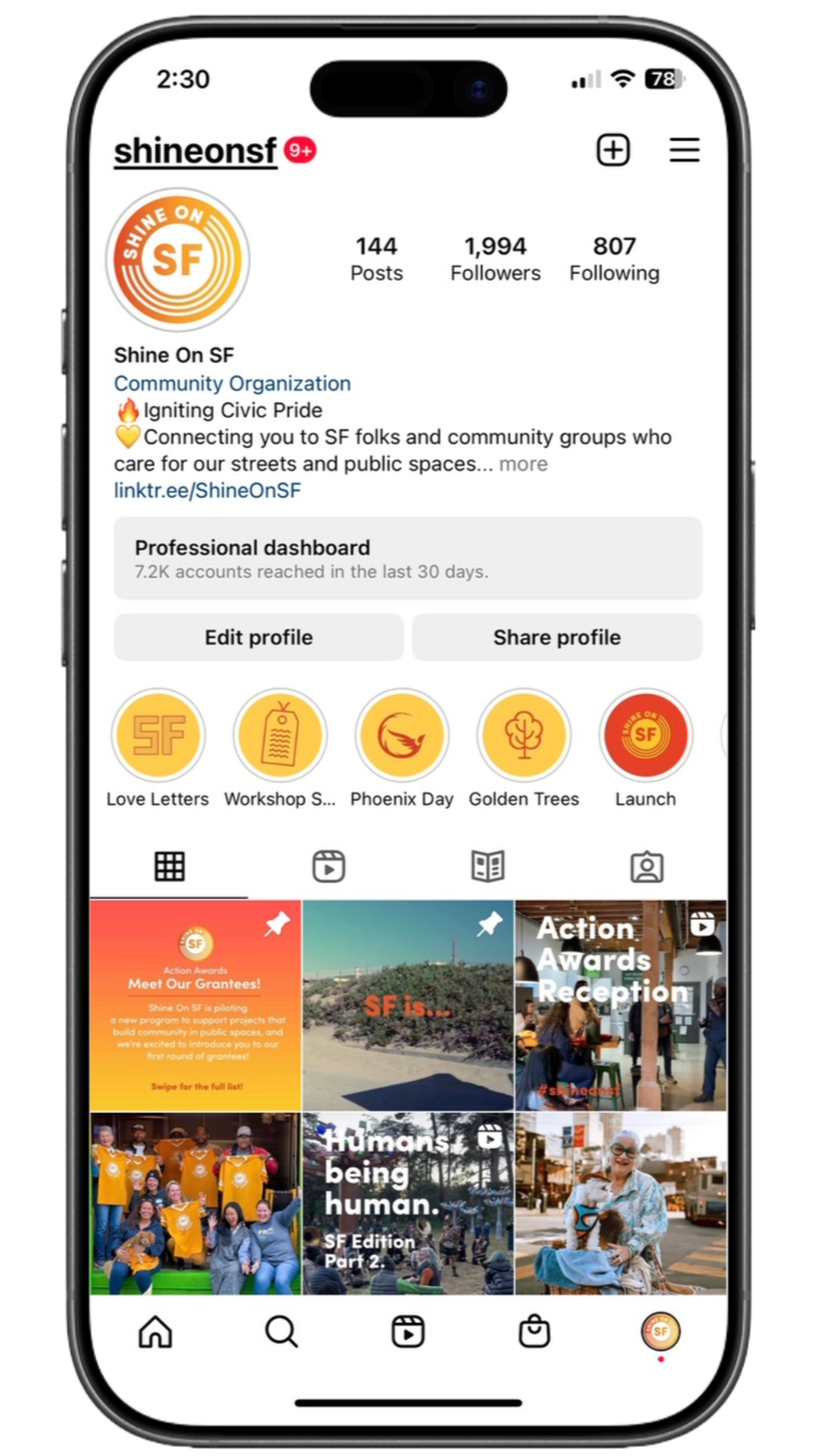 The digital voice of Shine On SF is lighthearted, playful, humorous, and familiar in tone. The visual identity for Shine On SF conveys hope, community, fun, civic pride, and gratitude.